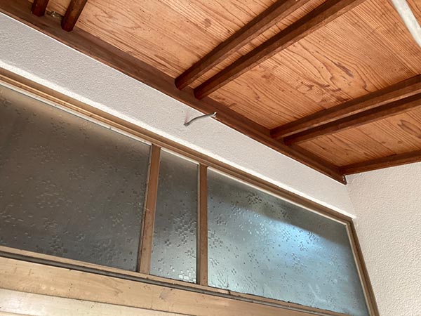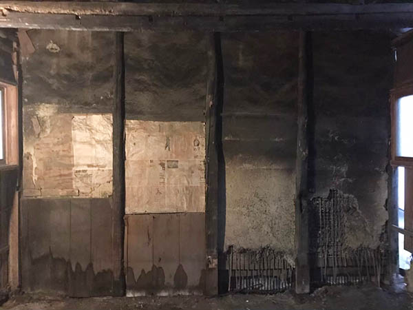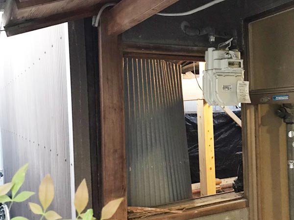 建物の構造材の状態を確認するために床や壁・天井を剥がし、柱・梁の状態を確認する。