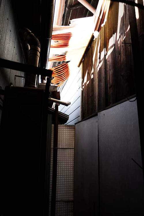 建物周辺やアプローチの路地の雰囲気、建物への光の入り方を確認して設計のイメージを広げていく。