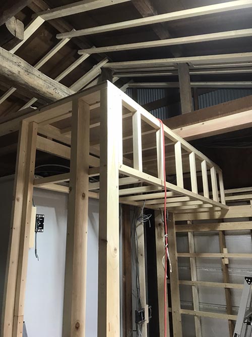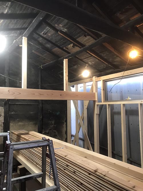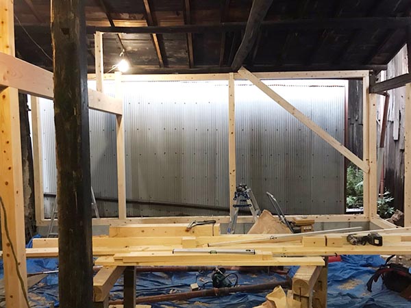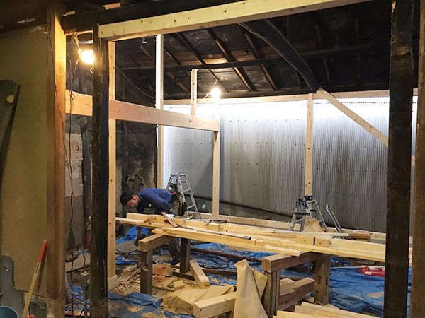 大工さんが入ってきて本格的に木工事が始まった。既存の柱と新しい梁をつなぐ。とても丁寧にやってもらっている。
