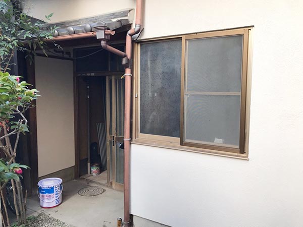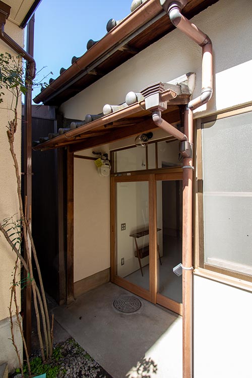 プロジェクト第一弾として手掛けるのは、二条城近くの物件。気づかずに通り過ぎてしまいそうな細い路地奥にひっそり佇む平屋です。あとから増築した部分と連結した造りで、土地面積は15坪ほどとかなりコンパクト。法律上、一度取り壊してしまうと建て替えができないということもあり、現状では活用方法が想像しにくいのが難点となっていました。
