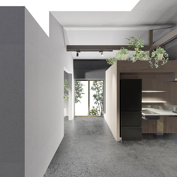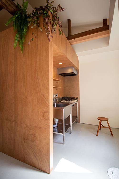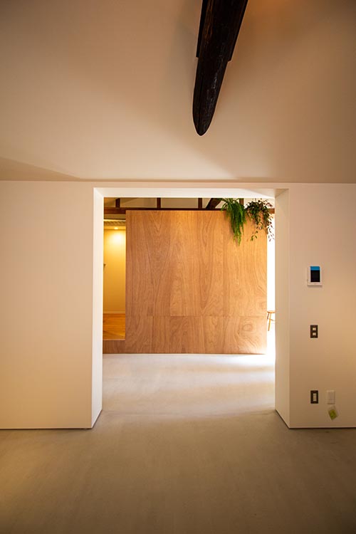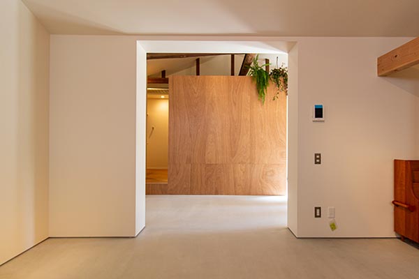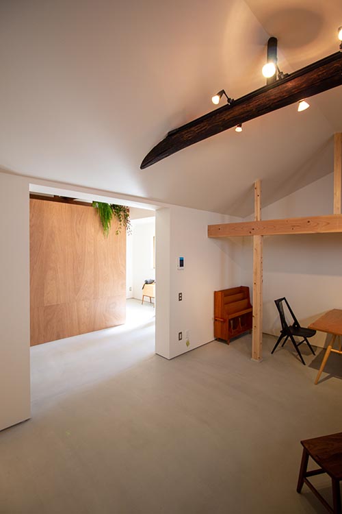 そこで今回は、全面的な改装で建物を生まれ変わらせる計画に。意識したのは、細部をつくり込みすぎないこと。住む人が自ら手を加え、「その人らしい表情や味わいのある場所」、「愛着の持てる場所」へと“育てて”いっていただきたい、という想いから、あえて余白を残した設計にしました。シンプルなしつらえなので、住職一体型のオフィスやアトリエ、住宅、セカンドハウスなど、幅広い用途にご利用いただけます。