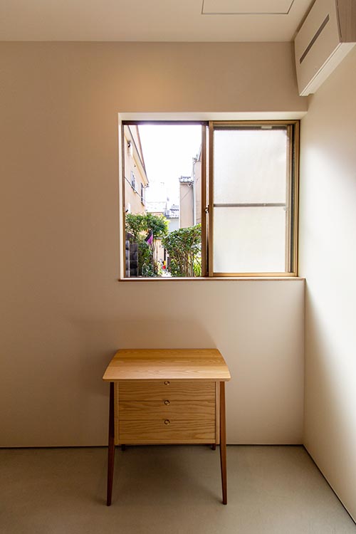 小さな空間では窓の取り方で空間の広がりが変わる。光や使い方なども同時に検討しながら決めていった。