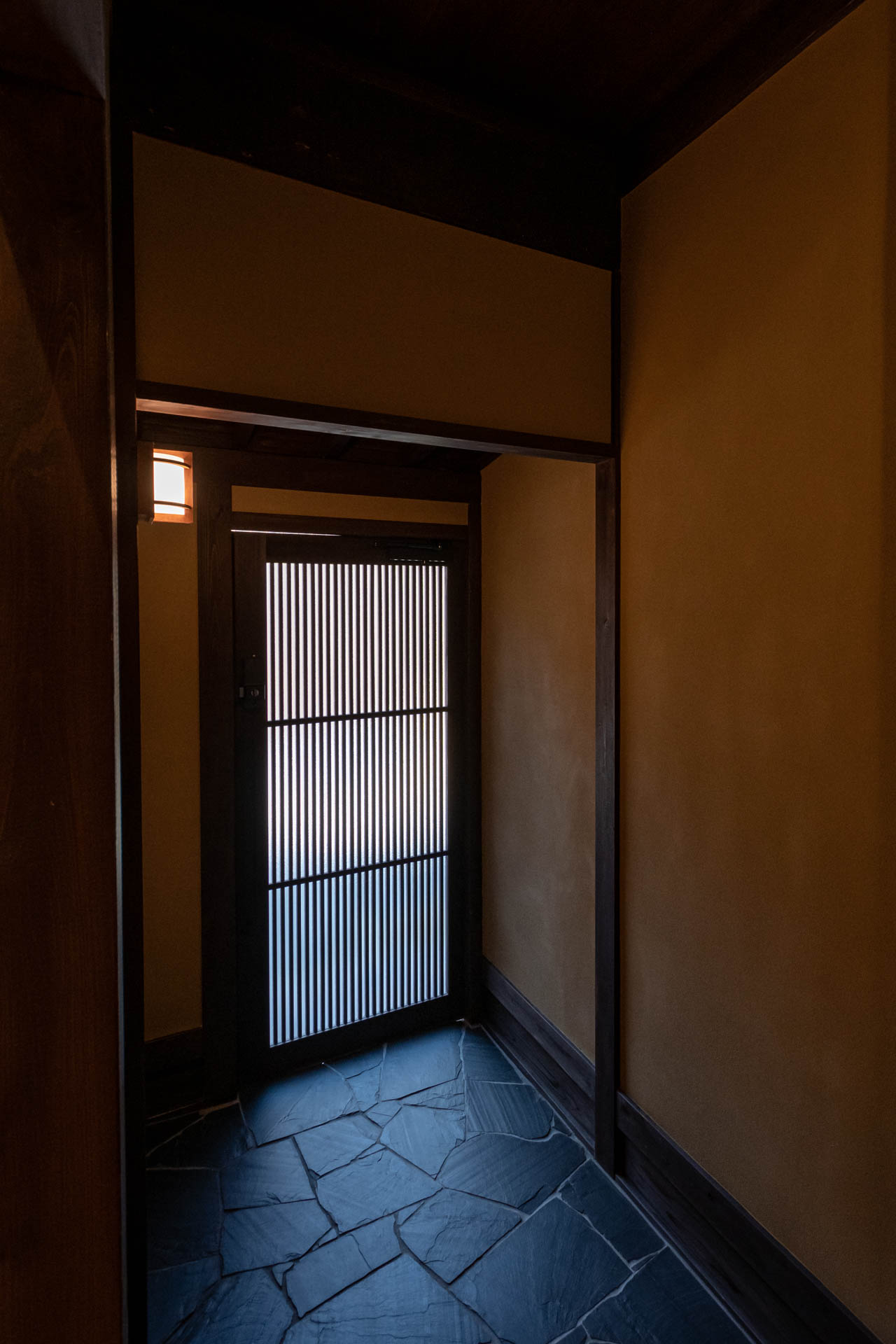 玄関は飾りたてず、外と内の間の切り替えの空間としておくゆかしさのあるシンプルなデザインにしました。